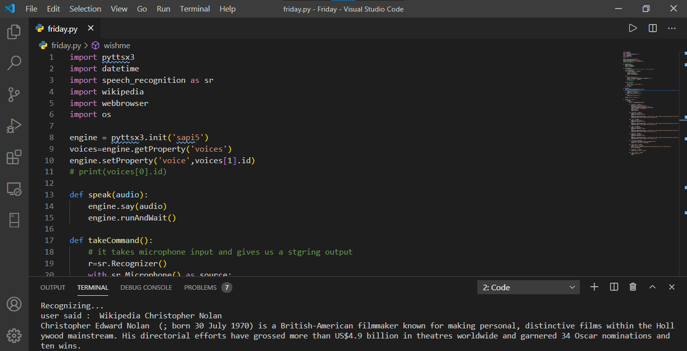 In this project I've created a simple AI where it will act according to the voice command I give. This is still under development. Simple commands will still work. You can also run this but be sure to install the dependencies.